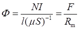 實驗表明,在鐵芯線圈電路中,線圈的電流越大,線圈的匝數(shù)越多,產(chǎn)生的磁通就越多。通常把線圈匝數(shù)與線圈電流的乘積NI稱為磁通勢,用F表示,即