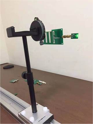 11.將收發(fā)天線設(shè)置為水平極化狀態(tài),將制作好的天線安裝在云臺支臂上,然后用云臺支臂固定旋鈕固定。