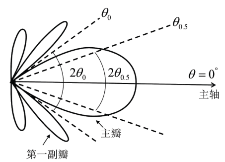 (4) 副瓣寬度。指第一副瓣兩邊兩個零輻射方向之間的夾角;