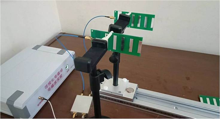 2)將八木天線安裝到旋轉支架上,將其垂直放置,移動到距離發(fā)射天線80~90cm處。