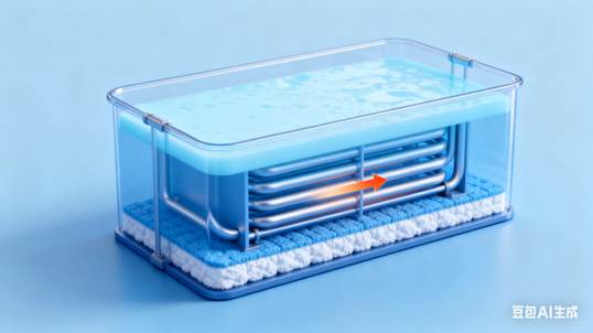 11.104、需要放熱時,液態(tài)石蠟通過換熱管釋放熱量并凝固(液態(tài)→固態(tài)),藍色箭標注熱量輸出方向