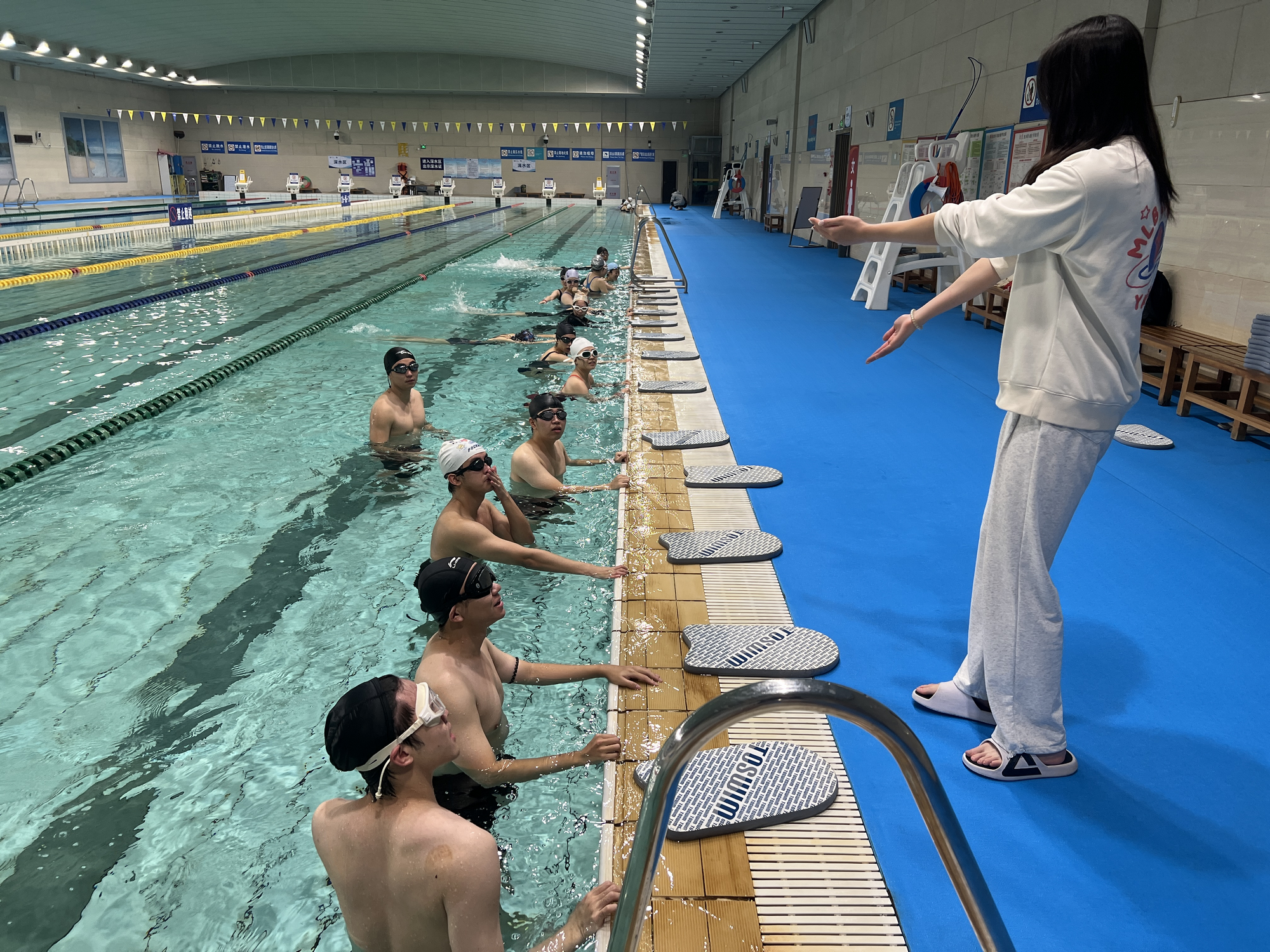 活動伊始,參與學(xué)員們齊聚邱德拔游泳館,通過簡單的自我介紹與游泳基礎(chǔ)交流環(huán)節(jié),迅速打破了陌生感,拉近了彼此的距離。林佳雯老師詳細(xì)講解了自由泳的運動特點、泳池安全規(guī)范及注意事項,帶領(lǐng)大家開展充分的陸上熱身與水中適應(yīng)練習(xí),從關(guān)節(jié)活動到呼吸調(diào)整,每一個環(huán)節(jié)都力求扎實到位,為后續(xù)技能學(xué)習(xí)筑牢根基。泳池邊,同學(xué)們的交流聲與笑聲此起彼伏,輕松活躍的氛圍讓大家對接下來的課程充滿期待。