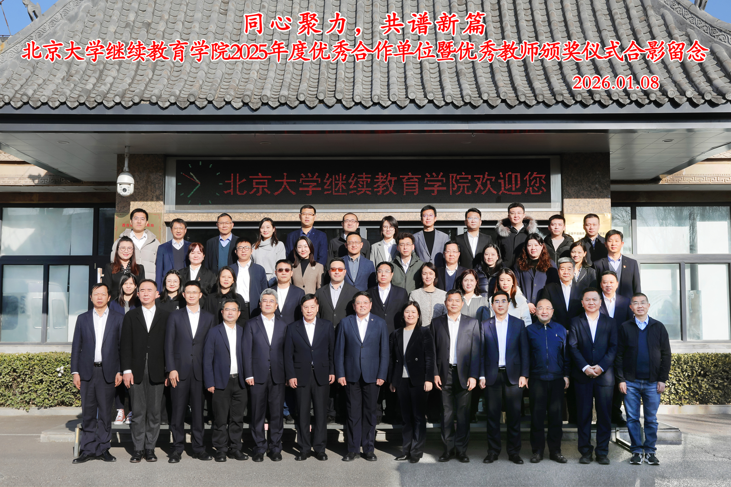 1月8日上午,以“同心聚力,共譜新篇”為主題的北京大學(xué)繼續(xù)教育學(xué)院2025年度優(yōu)秀合作單位暨優(yōu)秀教師頒獎(jiǎng)儀式于學(xué)院達(dá)園報(bào)告廳舉行。北京大學(xué)黨委常委、副校長(zhǎng)兼任總務(wù)長(zhǎng)董志勇,繼續(xù)教育學(xué)院院長(zhǎng)李本綱以及學(xué)院領(lǐng)導(dǎo)班子成員出席此次活動(dòng),13位獲獎(jiǎng)合作單位代表、6位獲獎(jiǎng)教師代表應(yīng)邀蒞臨現(xiàn)場(chǎng)。儀式由繼續(xù)教育學(xué)院副院長(zhǎng)李建新主持。