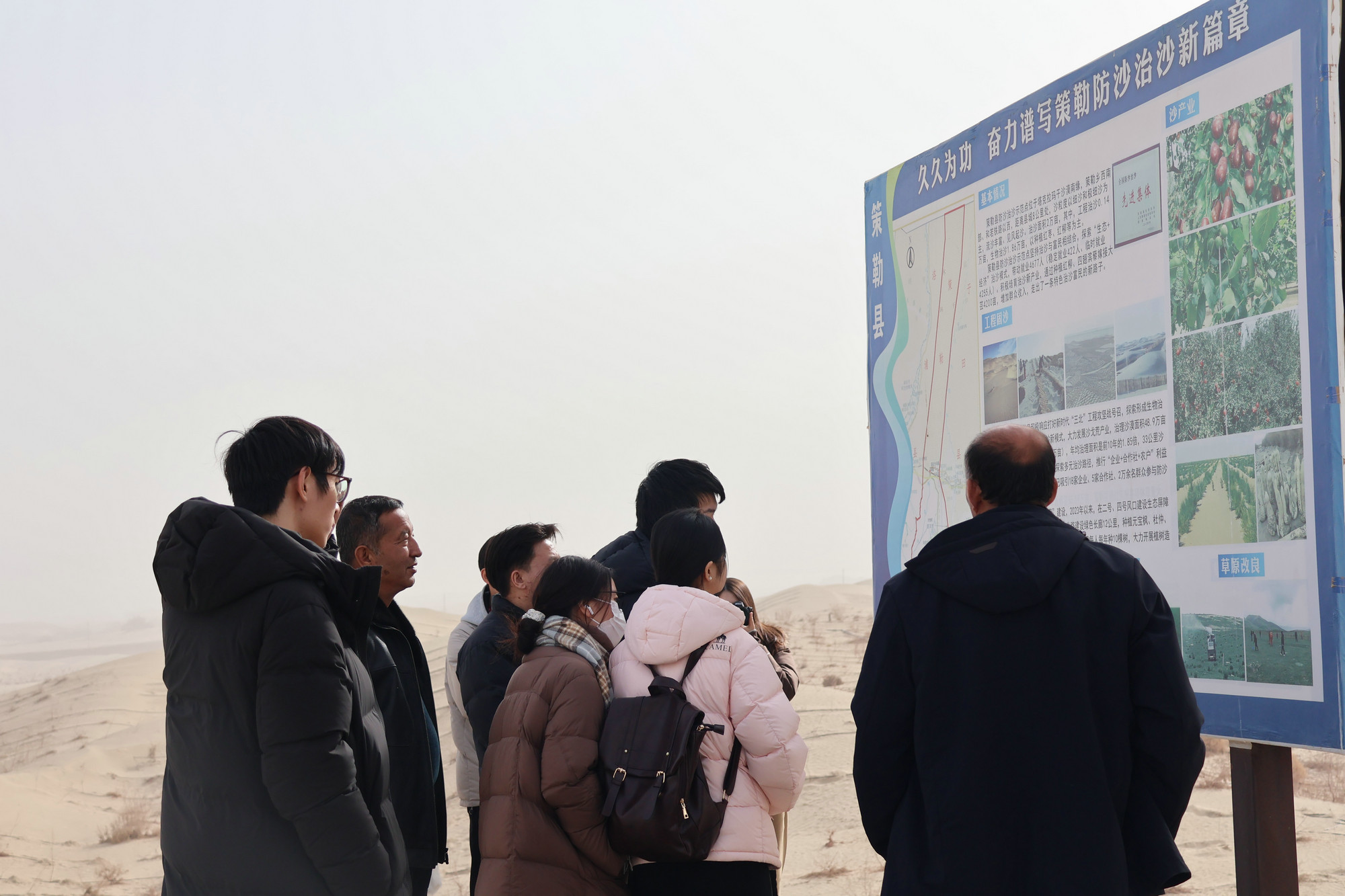 在策勒縣治沙站,成員們被“人進(jìn)沙退”的“奇跡”所震撼,深入探討光伏治沙的生態(tài)與經(jīng)濟(jì)雙重價值。