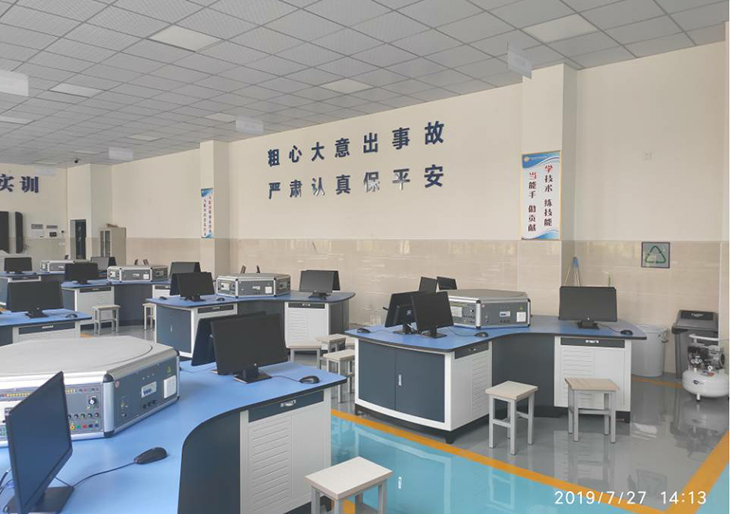 技能工作島由三邊弧形工作臺、六邊形實(shí)訓(xùn)控制屏及典型工作任務(wù)組成,能同時(shí)容納6名學(xué)生在設(shè)備上進(jìn)行操作。