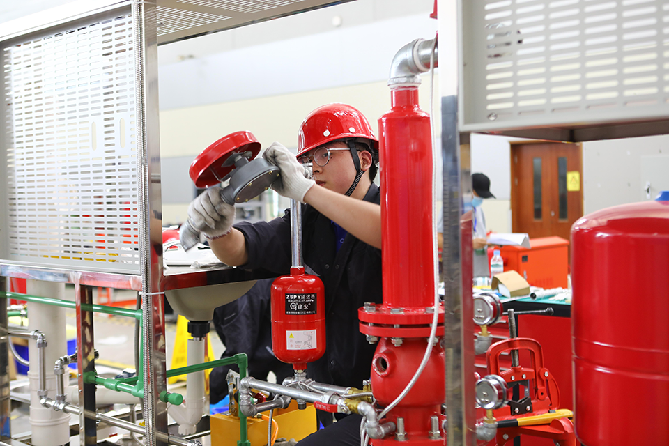 據(jù)悉,此次賽項(xiàng)包括建筑生活熱水系統(tǒng)、生活冷水系統(tǒng)、消防給水系統(tǒng)、排水系統(tǒng)等項(xiàng)目真實(shí)工作場(chǎng)景,考察選手系統(tǒng)圖繪制、材料清單編制、施工方案編制及管材安裝與質(zhì)量檢查,電氣接線、系統(tǒng)調(diào)試、故障診斷等知識(shí)與技能。加工管材、通水試壓、電氣安裝、系統(tǒng)調(diào)試……一批年輕的“技能達(dá)人”在賽場(chǎng)上忙得不亦樂(lè)乎。“建筑設(shè)備安裝與調(diào)控(給排水)”賽項(xiàng)與百姓生活息息相關(guān),涉及智能家居、智能住宅、生活排水等領(lǐng)域。比賽現(xiàn)場(chǎng)選手們兩人一組,分別負(fù)責(zé)水路和電路,不僅要懂得設(shè)備的安裝調(diào)試,還要學(xué)會(huì)編程,在規(guī)定的比賽時(shí)間內(nèi),合作完成生活給水、消防給水、熱水給水、排水、給排水自動(dòng)控制和衛(wèi)浴等6個(gè)系統(tǒng)30多道工序,最終完成給排水的設(shè)計(jì)安裝調(diào)試,同時(shí)比賽項(xiàng)目中還增加了故障排除,需要參賽選手去發(fā)現(xiàn),解決實(shí)際工作中的問(wèn)題。