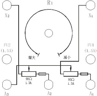 由于實(shí)驗(yàn)的需要,變阻器除了做可變電阻使用外,還可采用電位器接法做分壓器用。例如他勵(lì)直流發(fā)電機(jī)勵(lì)磁電壓調(diào)節(jié)就可采用電位器接法。做分壓器時(shí)可以單只使用,也可以并聯(lián)使用。分壓器接法為: 固定電壓接在A2和X2之間,而可變電壓可以從A3和A2(或A3和A4)端引出。