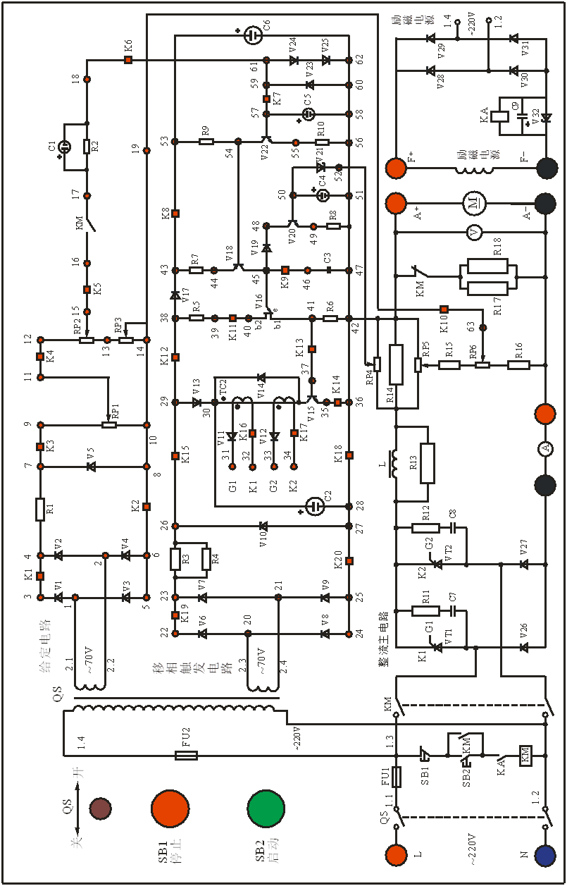 系統(tǒng)由 主電路→觸發(fā)電路→控制電路→輔助電路(包括保護(hù)、指示、報(bào)警)等。