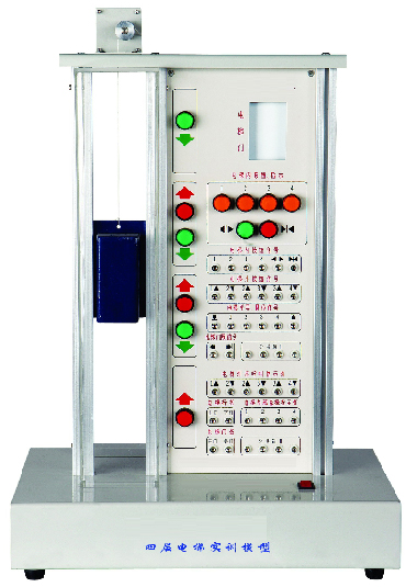模型為微型實物的四層電梯模型,由底座、上下行轎箱、行程限位機構、呼叫指示燈、轎箱門、控制面板、控制電機、傳感器、傳動機構等部件組成。相關控制接口均已引出。