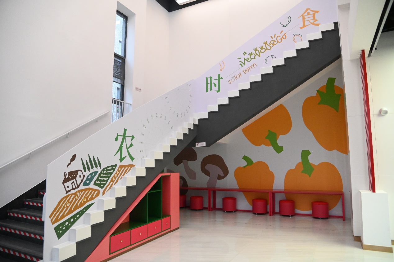 農(nóng)園食堂是教學(xué)區(qū)最大的食堂,本次工程是農(nóng)園食堂自2002年建成投入使用以來(lái)首次大規(guī)模更新改造,涉及基建改造、設(shè)備更新及軟裝配套等。改造工作自2024年7月啟動(dòng)以來(lái),陸續(xù)完成基建更新、新舊設(shè)備周轉(zhuǎn)安裝、米飯生產(chǎn)線重啟、智能結(jié)算系統(tǒng)部署、風(fēng)味檔口籌備、保潔團(tuán)隊(duì)選聘、消防物業(yè)協(xié)調(diào)、伙食菜品規(guī)劃、藝園食堂周轉(zhuǎn)等。在軟裝配套上延續(xù)“師生共建”方式,邀請(qǐng)校園公益營(yíng)建社、城市與環(huán)境學(xué)院、現(xiàn)代農(nóng)學(xué)院及現(xiàn)代農(nóng)業(yè)研究院對(duì)公共空間進(jìn)行設(shè)計(jì)。文化墻以北大餐飲歷史為脈絡(luò),串聯(lián)農(nóng)時(shí)節(jié)氣與農(nóng)事記憶,營(yíng)造清新雅致的就餐氛圍。同時(shí),食堂還利用公共空間設(shè)立臨展區(qū),首期展覽以現(xiàn)代農(nóng)學(xué)院及現(xiàn)代農(nóng)業(yè)研究院的科研成果展示為主。