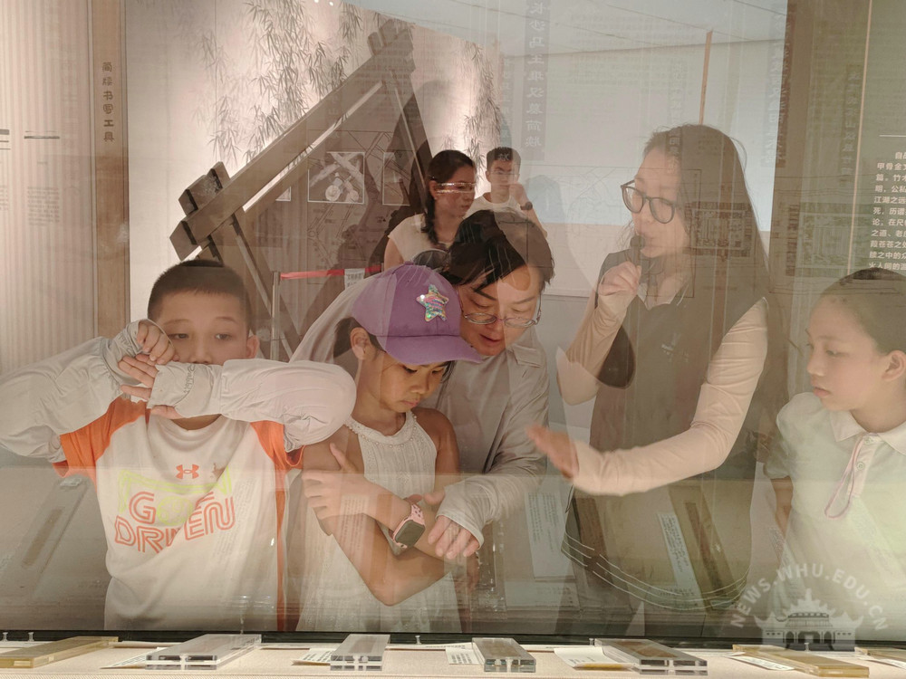 恰逢暑期,展廳成為全國各地中小學(xué)生研學(xué)的生動(dòng)課堂。據(jù)不完全統(tǒng)計(jì),展覽共接待研學(xué)團(tuán)隊(duì)100余支。青少年在大學(xué)生志愿者帶領(lǐng)下,認(rèn)真聆聽簡牘背后的故事,于古今對話中體悟中華傳統(tǒng)文化的深厚底蘊(yùn),使展覽真正成為一堂沉浸式的歷史文化實(shí)踐課。