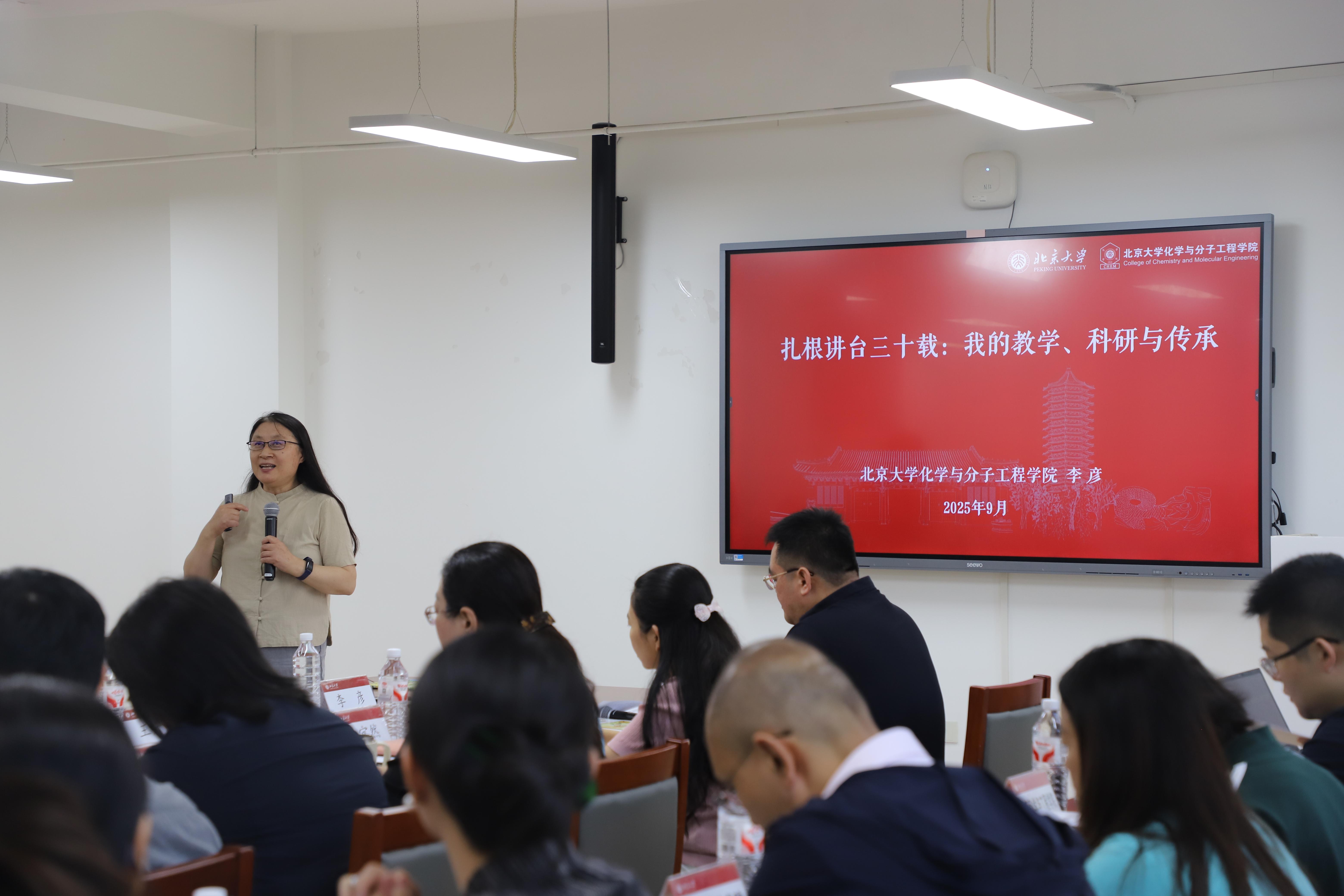 李彥以“扎根講臺(tái)30載:我的教學(xué)、科研與傳承”為題,結(jié)合30余載執(zhí)教生涯,深情回顧了自己教書(shū)育人的心路歷程。她從2001年接手國(guó)家級(jí)精品課程《普通化學(xué)》講起,生動(dòng)講述了在前輩大師傅鷹、張青蓮、徐光憲等先生的精神感召下,如何將“課比天大”作為自己的信條,20余年如一日默默堅(jiān)守在教學(xué)一線。談及教學(xué)與科研的關(guān)系時(shí),李彥以自己攻克碳納米管國(guó)際性難題的經(jīng)歷為例,展示了教學(xué)相長(zhǎng)的生動(dòng)實(shí)踐。她表示,正是在《普通化學(xué)》課堂上講授的酶催化反應(yīng)原理給了她科研靈感,進(jìn)而提出基于結(jié)構(gòu)匹配的催化劑設(shè)計(jì)方案,最終成功攻克了“制備結(jié)構(gòu)一致的單壁碳納米管”這一世紀(jì)難題。而這一重大科研突破,又成為她課堂教學(xué)中最鮮活的案例,真正實(shí)現(xiàn)了教學(xué)、科研與人才培養(yǎng)的有機(jī)融合與良性互動(dòng)。