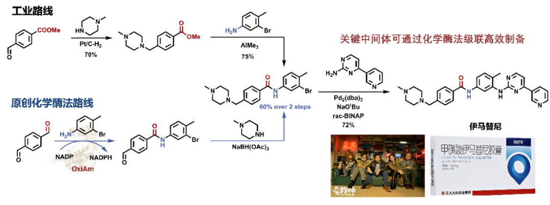 基于這一全新的“醇/醛邏輯”,研究人員對以電影《我不是藥神》描述的抗白血病明星藥物伊馬替尼(格列衛(wèi))作為代表性的藥物分子的合成路線進行了從頭設計。與傳統(tǒng)以羧酸為核心的合成路線相比,新策略在減少反應步驟、降低副產(chǎn)物生成以及提升整體原子經(jīng)濟性方面均表現(xiàn)出明顯優(yōu)勢,展示了其在藥物研發(fā)與工業(yè)制造中的現(xiàn)實應用潛力。