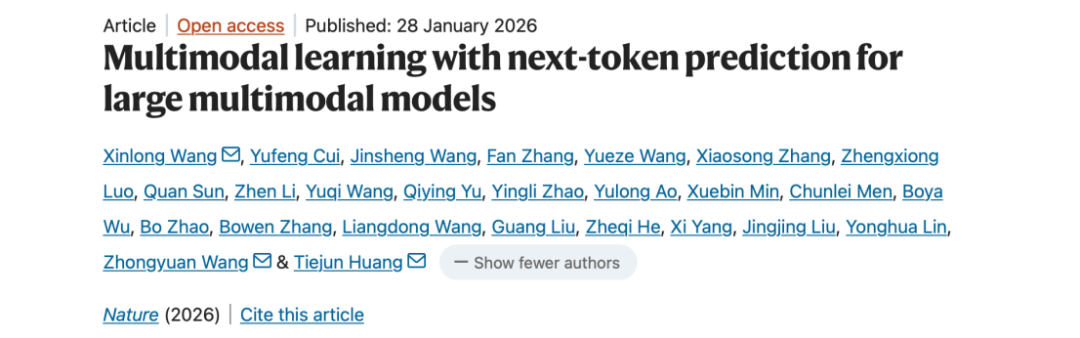 由北京大學計算機學院黃鐵軍團隊與合作者完成,發(fā)表于Nature的研究給出了答案。這項我國科研機構(gòu)首次主導發(fā)表于該刊的大模型成果表明,僅采用“預測下一個詞元”這一種核心范式,即可直接訓練出強大的原生多模態(tài)大模型Emu。它成功統(tǒng)一了文本、圖像與視頻的理解與生成,其性能可與針對特定任務設計的專用模型媲美。