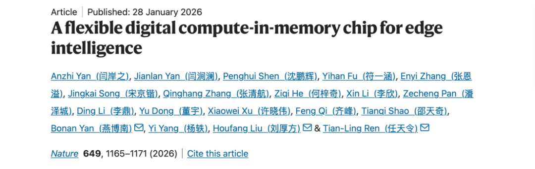北京大學人工智能研究院燕博南團隊與合作者,在Nature上發(fā)表了題為“A flexible digital compute-in-memory chip for edge intelligence”的研究成果,成功研制出世界首款基于量產(chǎn)工藝的大規(guī)模全柔性存算一體人工智能芯片“FLEXI”,為這一問題提供了突破性的答案。